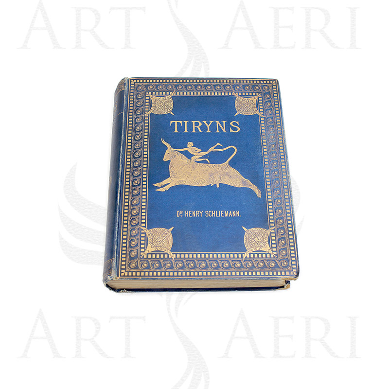 Schliemann (Henry): GREECE. TIRYNS. THE PREHISTORIC PALACE OF THE KINGS OF TIRYNS, FIRST EDITION, folding lithographed frontispiece, 28 lithographed or chromolithographed plates, many folding, one double-page, ink ownership inscription on front fly-leaf, original gift-decorated blue cloth, a very good copy (1886).