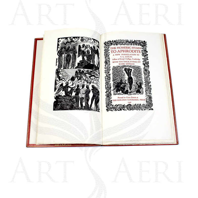 F.L. Lucas, Translator: HOMERIC HYMN TO APHRODITE (THE), , number 64 of only 100 SPECIALLY – BOUND COPIES, from an edition limited to 750 signed by the translator, frontispiece, pictorial title and illustrations by Mark Jeverin, original red pictorial morocco, gilt, t.e.g. slip-case, small folio, Golden Cockerel Press, (1948).