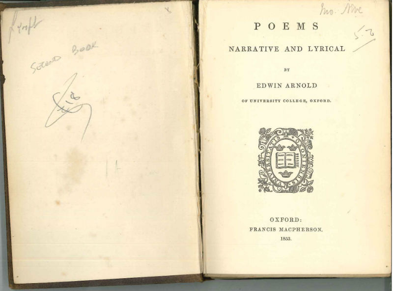 Arnold (Edwin): POEMS, Narrative and Lyrical, First Edition, Oxford (1853).