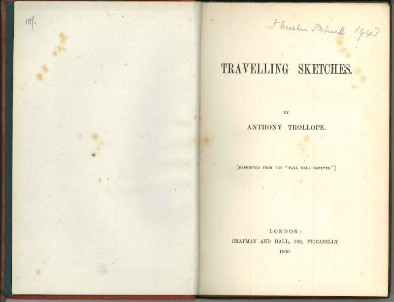 Trollope (Anthony): TRAVELLING SKETCHES, London (1866).